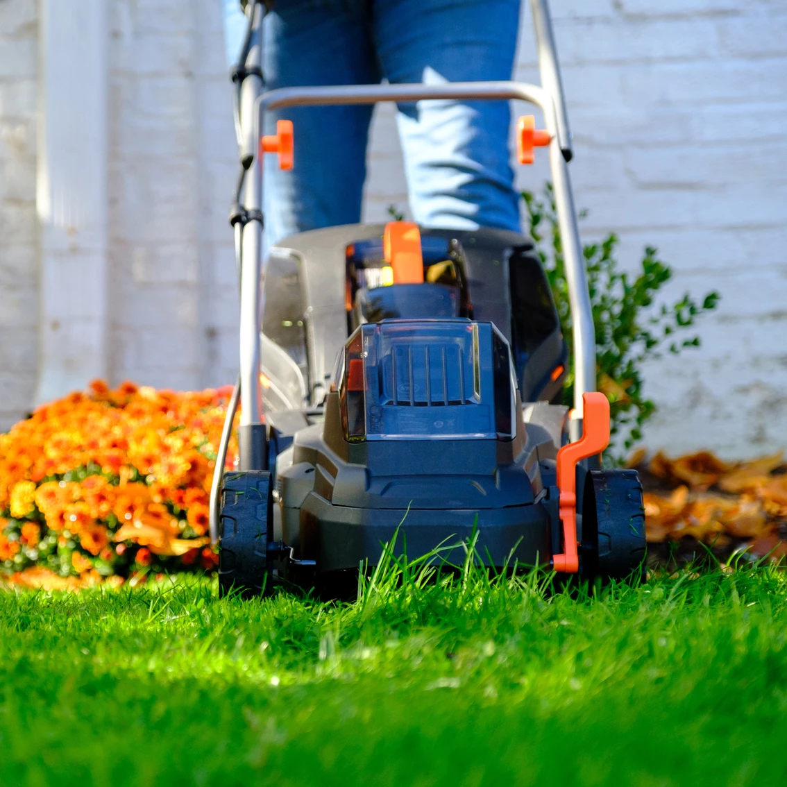 Scotts 20 Volt Lithium 14 in. Lawn Mower is great in tight spaces! Responding to the need for an easy-to-use machine that takes care of smaller yards, this machine delivers. A smaller electric mower that delivers the power of a gas machine with all the convenience of an electric unit. Durable steel blade cuts a 14 in. wide path with precision on each pass. Comes equipped with an easy on and off mulch plug and bag. Best of all: no gas, oil or tune-ups will be necessary.