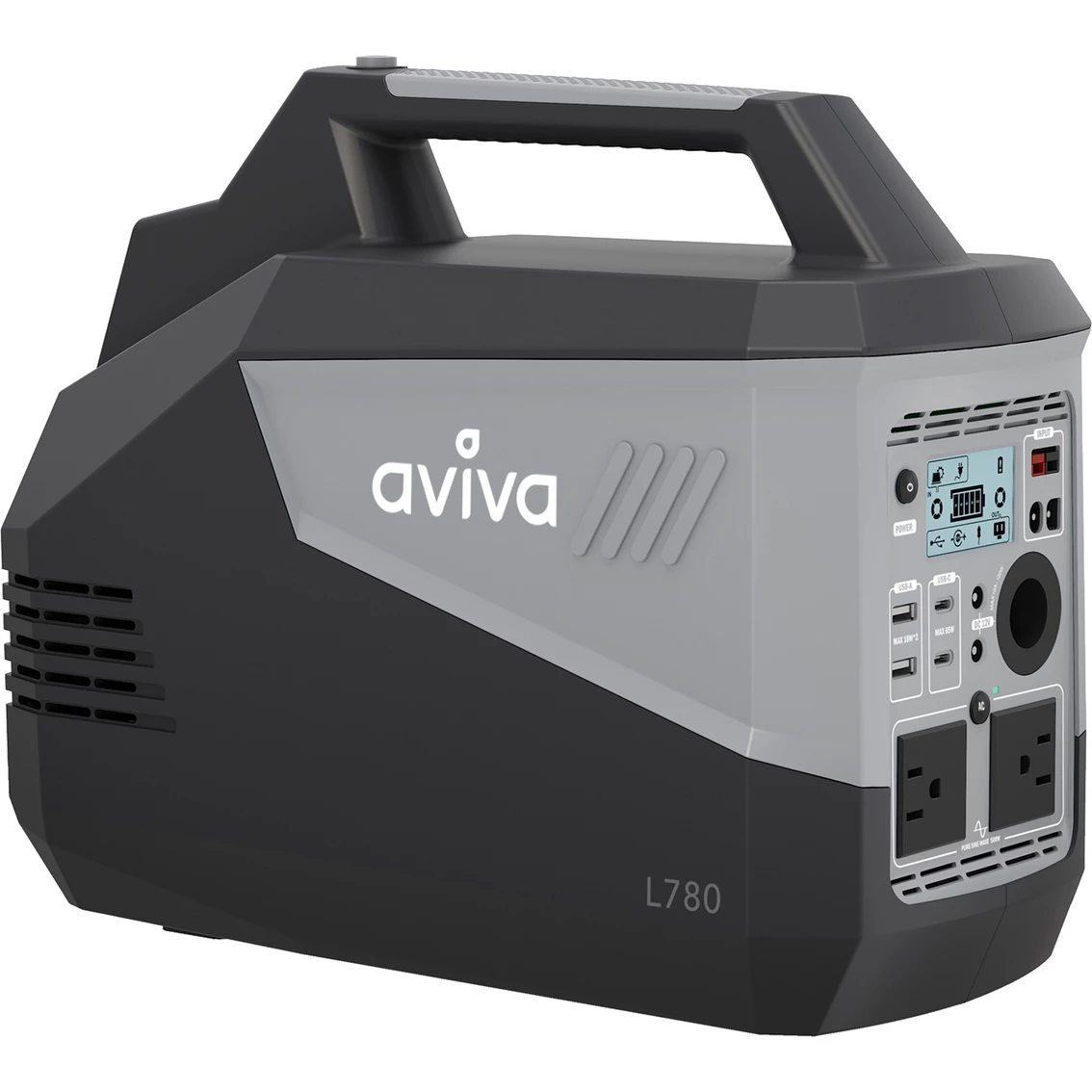 The Aviva L780 portable power station provides renewable energy storage using a 786Wh lithium-ion battery. It is the perfect mobile power source for off-grid work and play. Plus the L780 is a reliable power back-up and safe to use indoors. Supports 500 W Devices (2500 W Surge), Pure Sine Wave AC Outlets (110 V), USB and DC Ports. Compatible with Solar Panel up to 180 W (not included). Model: PR750NAL780.