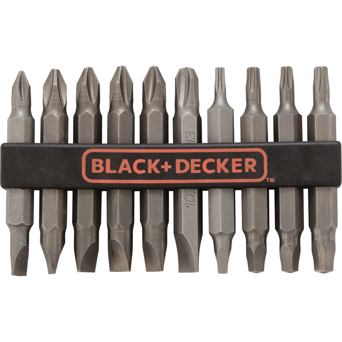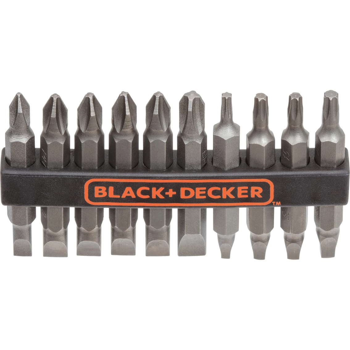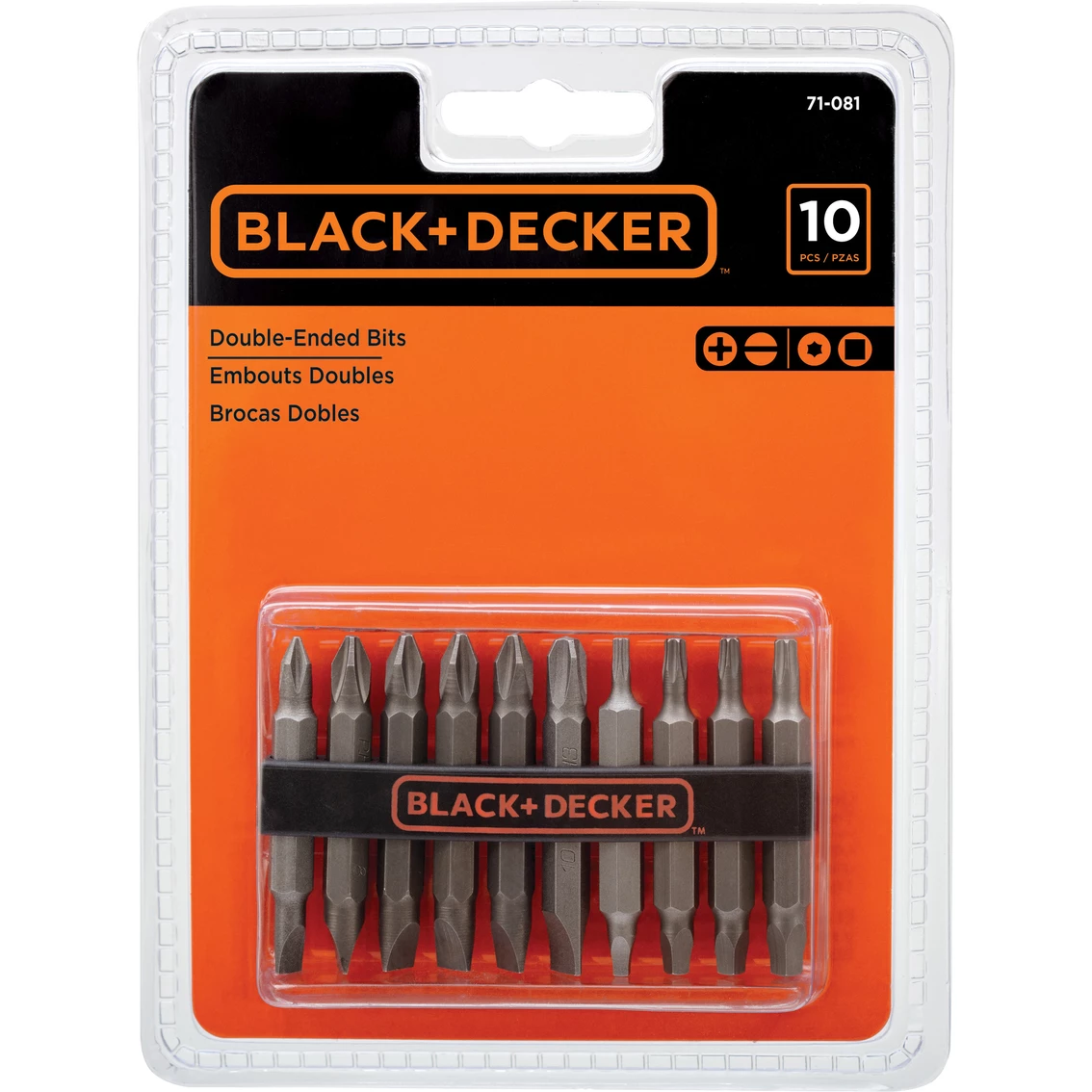 This Black and Decker 10-pc. Screwdriver Bit Set is ideal for common projects around the home and yard. This model 71 081 includes Phillips, slotted, square, and star bit tips. Model: 71-081.