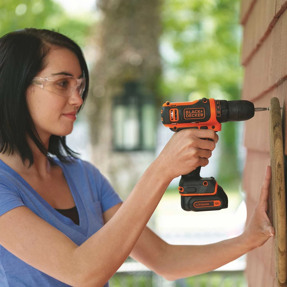 Featuring a powerful compact 12V Max lithium drill/driver and 56 hand tools and accessories, this Black & Decker home tool kit can help you tackle projects big and small. The 12V Max Lithium drill is 35% more compact than previous GCO1200C NiCad drill/driver and features mid-handle design for comfort and control and an LED light to illuminate work surfaces. Li-ion Battery holds a charge up to 18 months. Kit includes 56 hand tools and accessories to help tackle any project, plus a carrying bag for easy portability and storage.