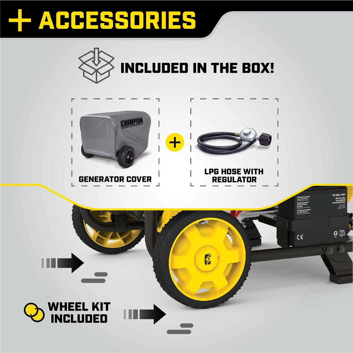 Championβs thoughtful packaging and clear directions make setup hassle free, plus the foldaway U-shaped handle makes it easy to store, while the never-flat tires in the included wheel kit make transport a cinch.