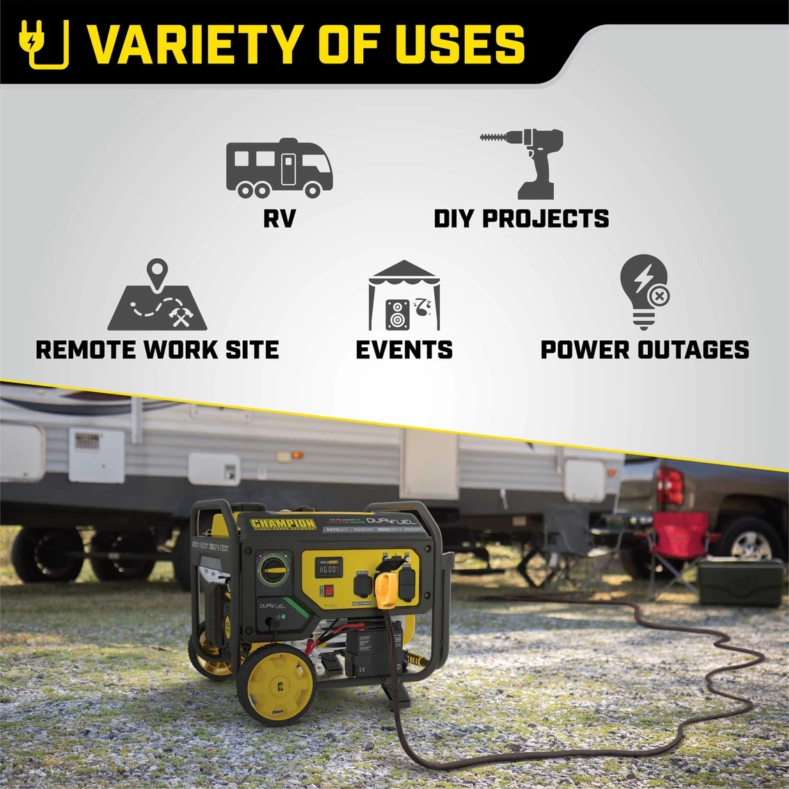 The Champion Power Equipment 200966 3500-Watt Dual Fuel Portable Generator is the perfect combination of versatility and convenience. Whether you need power for your home or next project, Champion Power Equipment makes powering your life more convenient than ever.