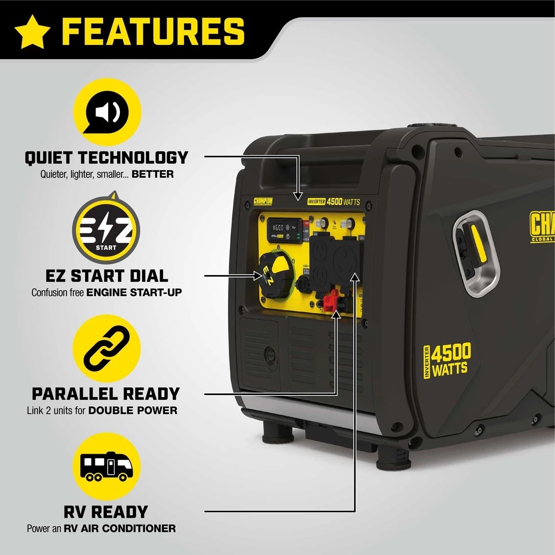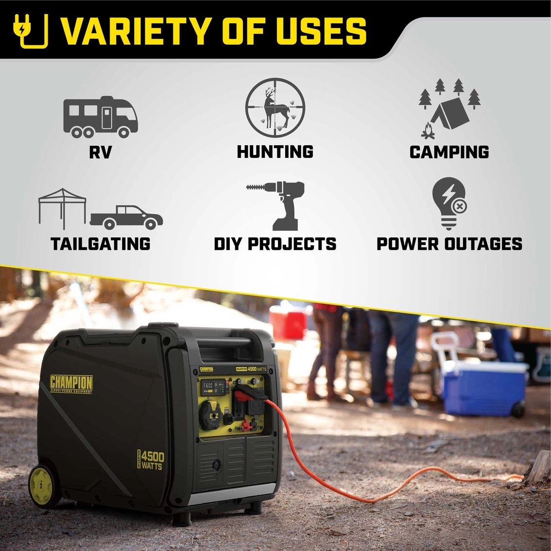 The Champion Power Equipment 4500-Watt Inverter Generator is ultra-quiet and ideal for camping, tailgating, powering items around the RV or providing backup for your essentials.