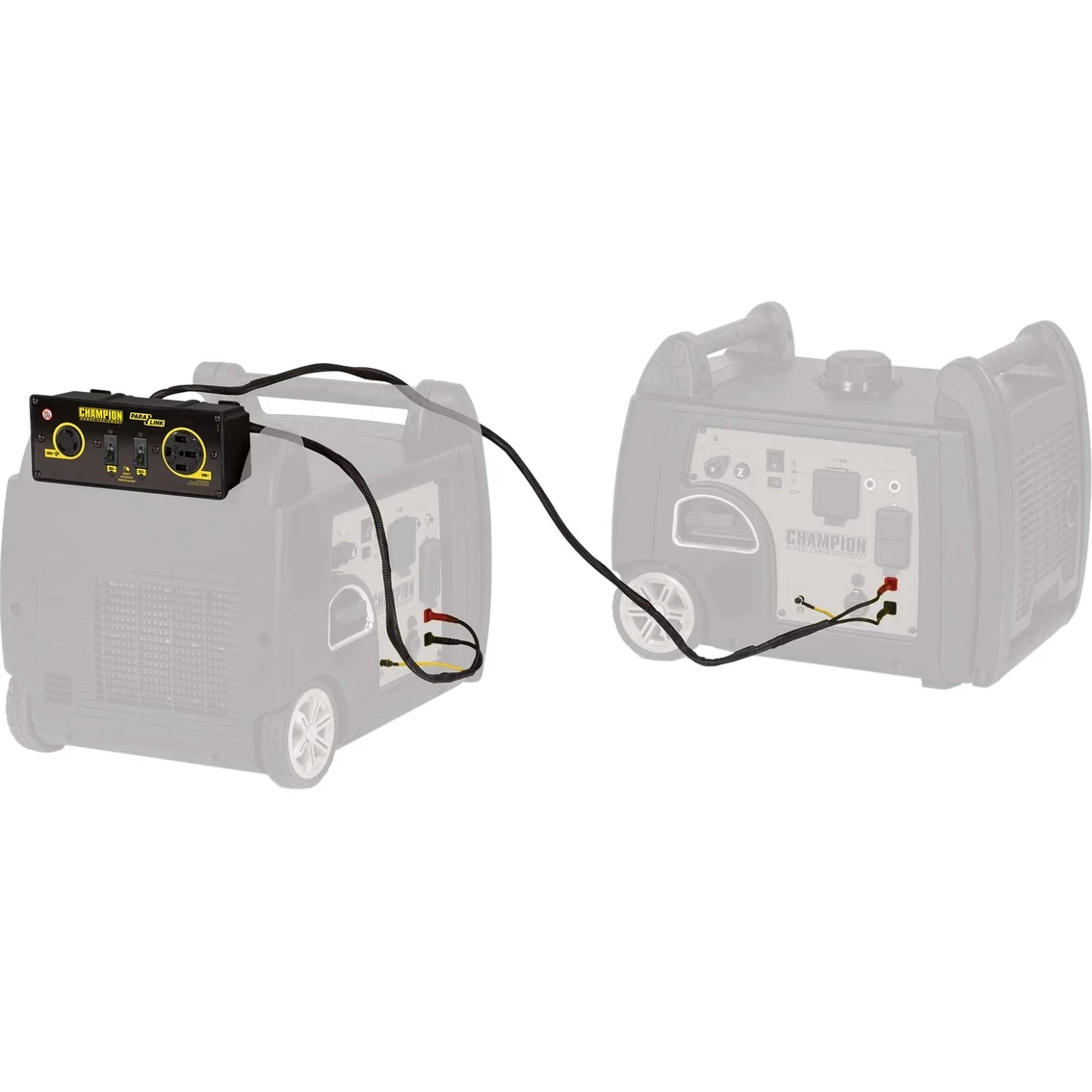 Championβs Parallel Kit increases your power by connecting two 2800-W or higher inverter generators. Quickly and easily installed, it includes circuit breakers plus 120V 30A locking and 120V 50A RV outlets and can run two 15,000 BTU RV air conditioners. Model: 100319.