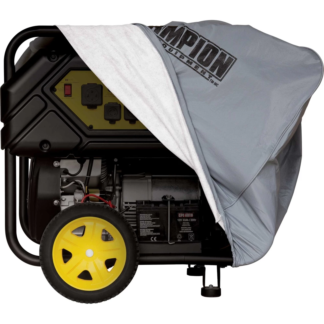 Once the cover is on your generator, the elastic base will provide a secure, custom-like fit that looks great and provides powerful protection for your generator and its engine. Championβs versatile cover also fits generators up to 35.4 x 25.6 x 29.5-inches in size. This cover is not designed to fit over wheels.