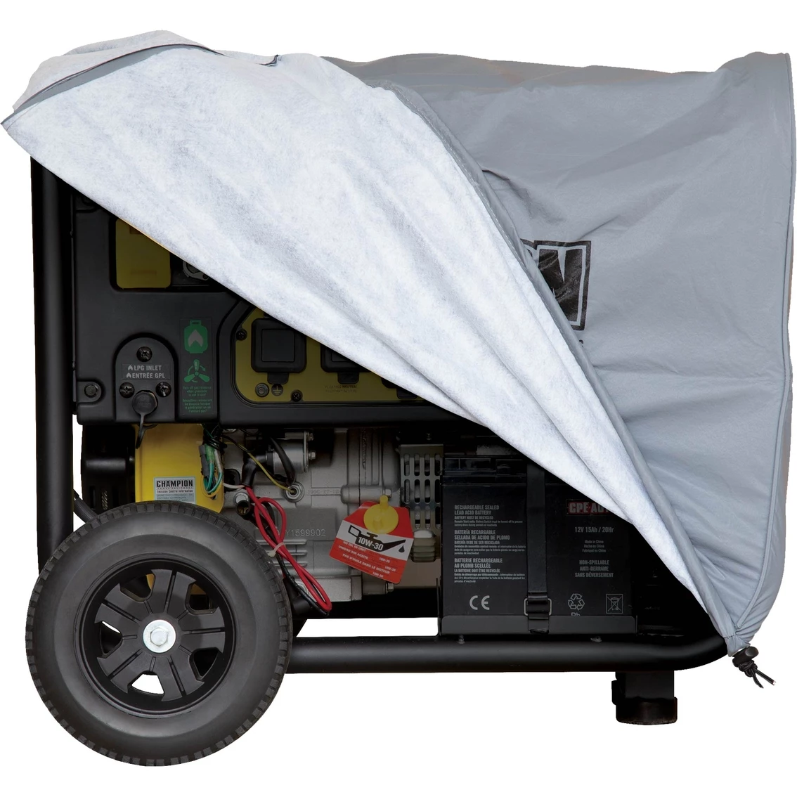 The Champion Power Equipment C90016 Weather-Resistant Storage Cover is designed to fit your 4800 to 11,500-watt generator to keep it safe, clean and dry. Whether your generator is being stored on a dirty job or around the house waiting for the next power outage, this cover provides vital protection.