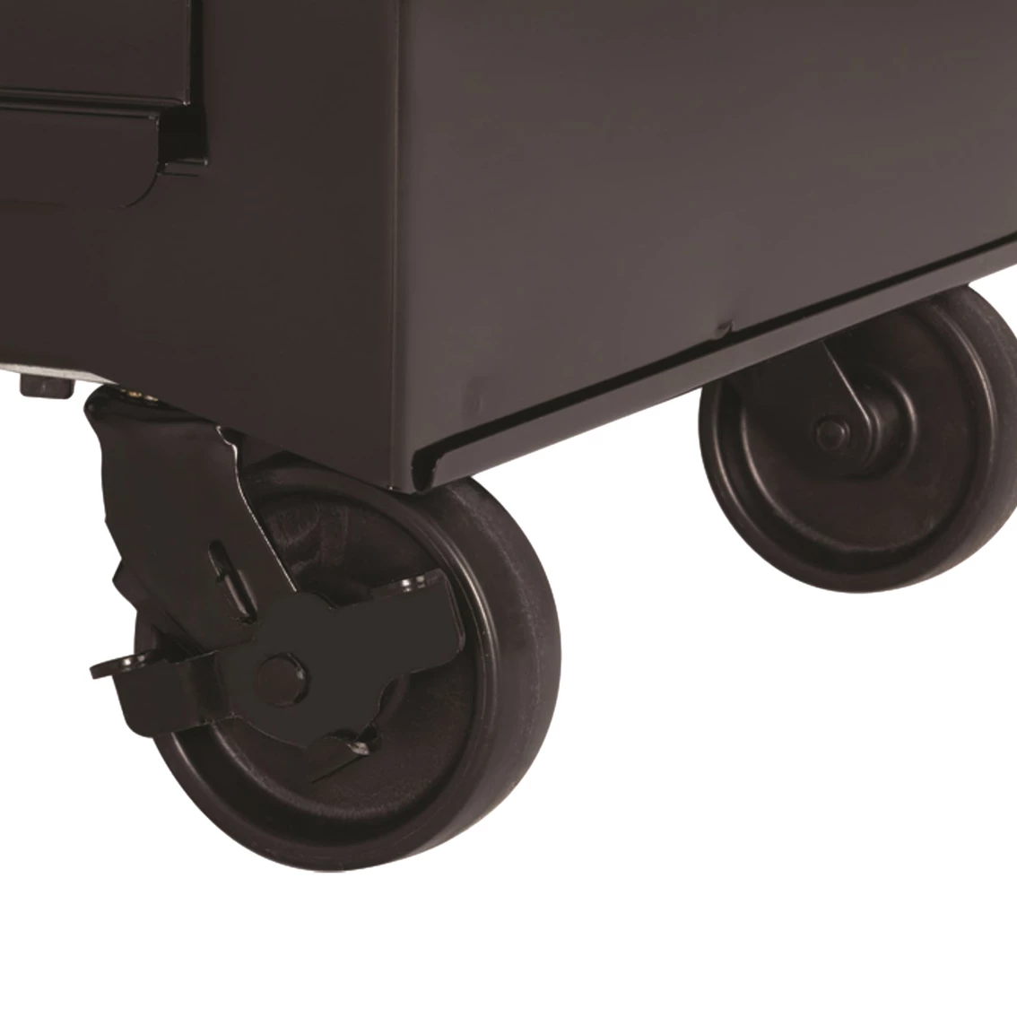 - Keyed locking system with an external lock bar safeguards the tool chest