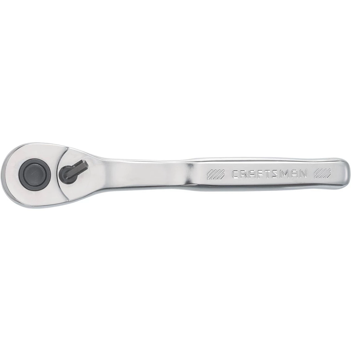 This Craftsman 3/8 in. Pear Head Ratchet has a large quick-release mechanism for easy removal of sockets and a full polish chrome finish for corrosion resistance. Pear Head offers strength, durability and performance. This is a 72 tooth ratchet for minimal arc swing. Model: CMMT81748.