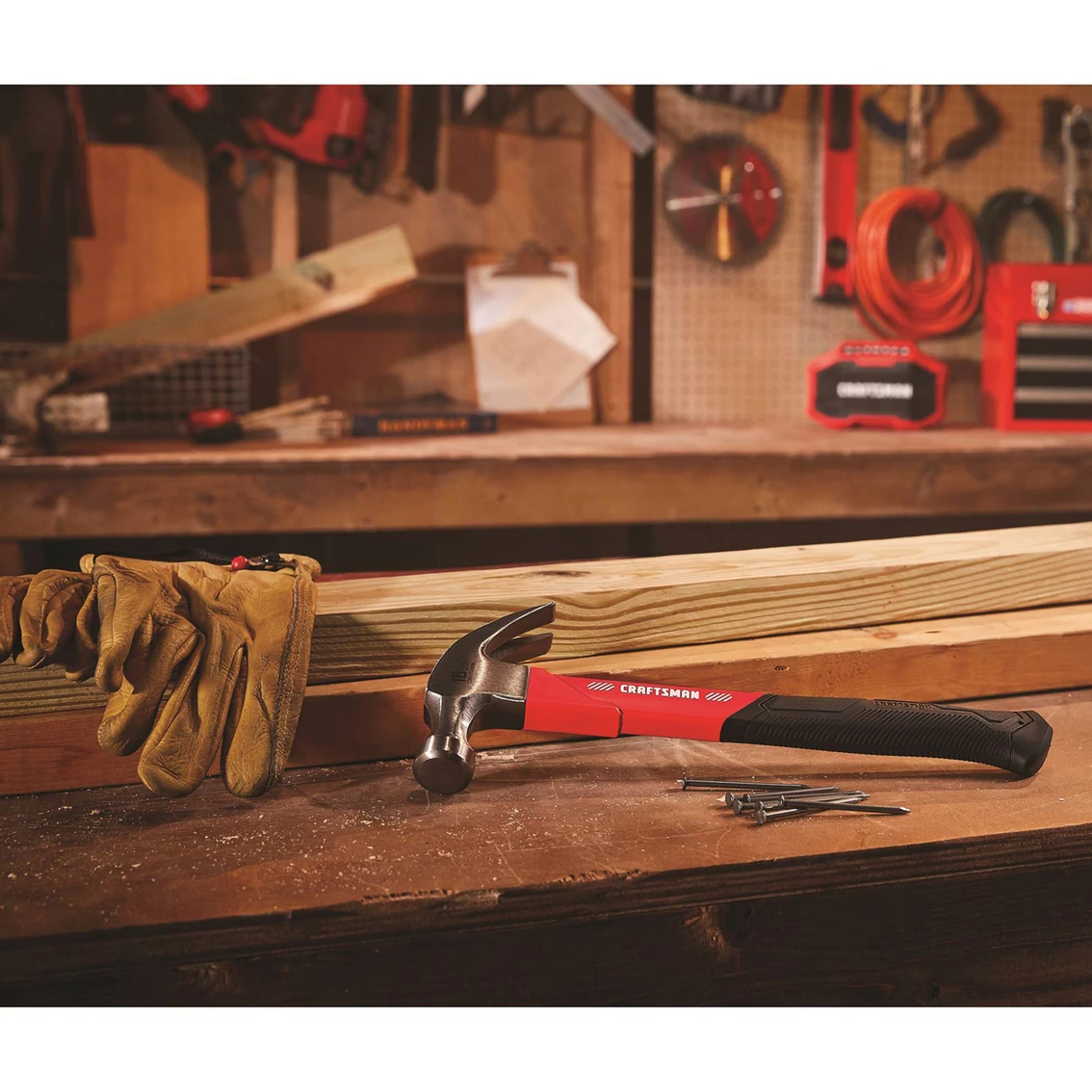 The 16 oz. Craftsman Fiberglass Hammer is built for durabilty against overstriking with an added protective portion where most fiberglass hammers break. This added feature will give the hammer a longer life and added durability for frequent use. Model: CMHT51398.