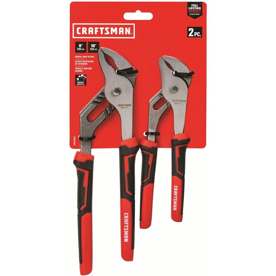CRAFTSMAN 2-pack of Groove Joint Pliers made of drop forged steel for strength and durability. Set includes 8-in pliers and 10-in pliers.