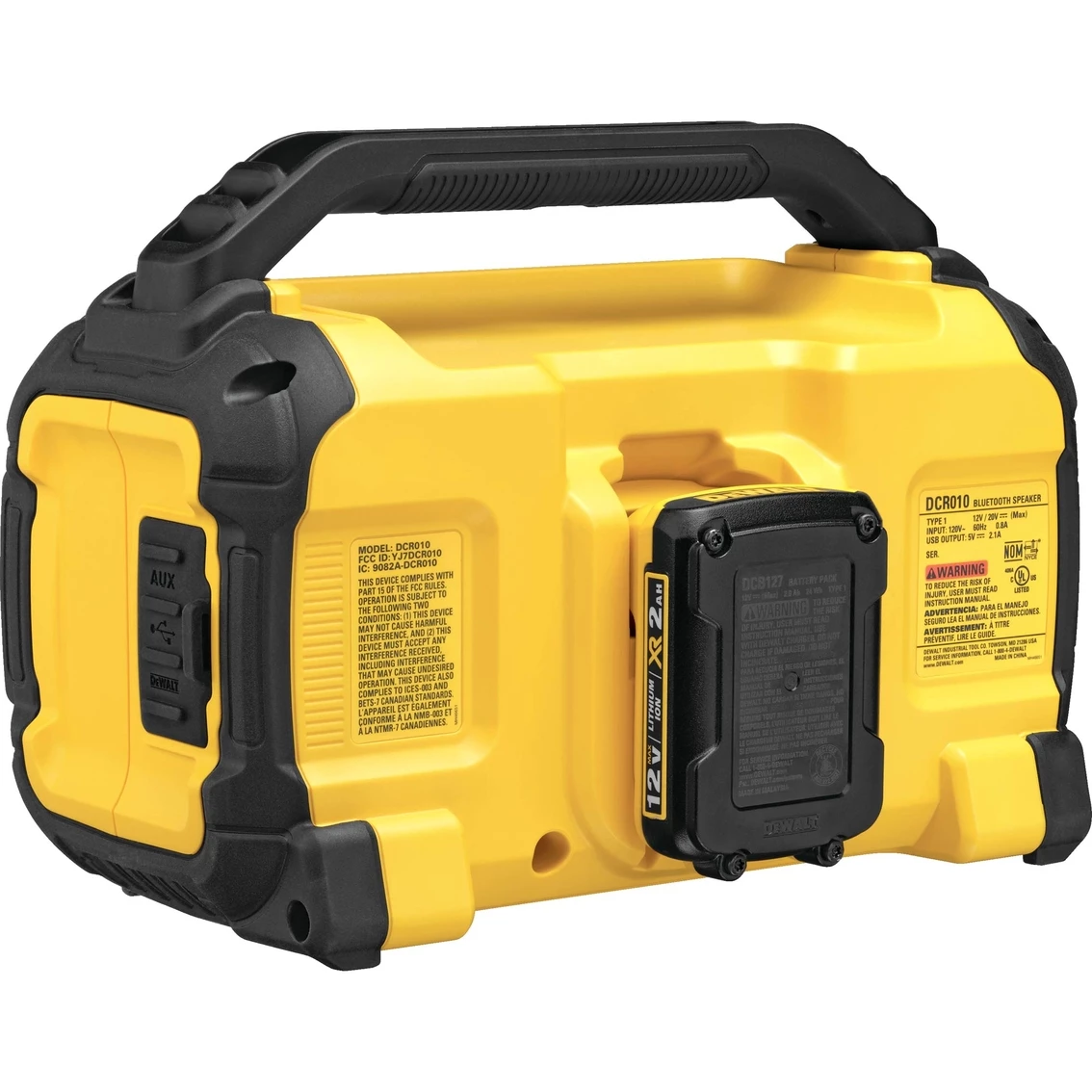The DeWalt DCR010 is designed to be the most versatile Bluetooth speaker on the market. It is able to run off DeWalt slide pack battery packs including 12-Volt, 20-Volt and FlexVolt packs, 20-Volt/60-Volt DeWalt batteries, and in AC current mode with provided power cord.