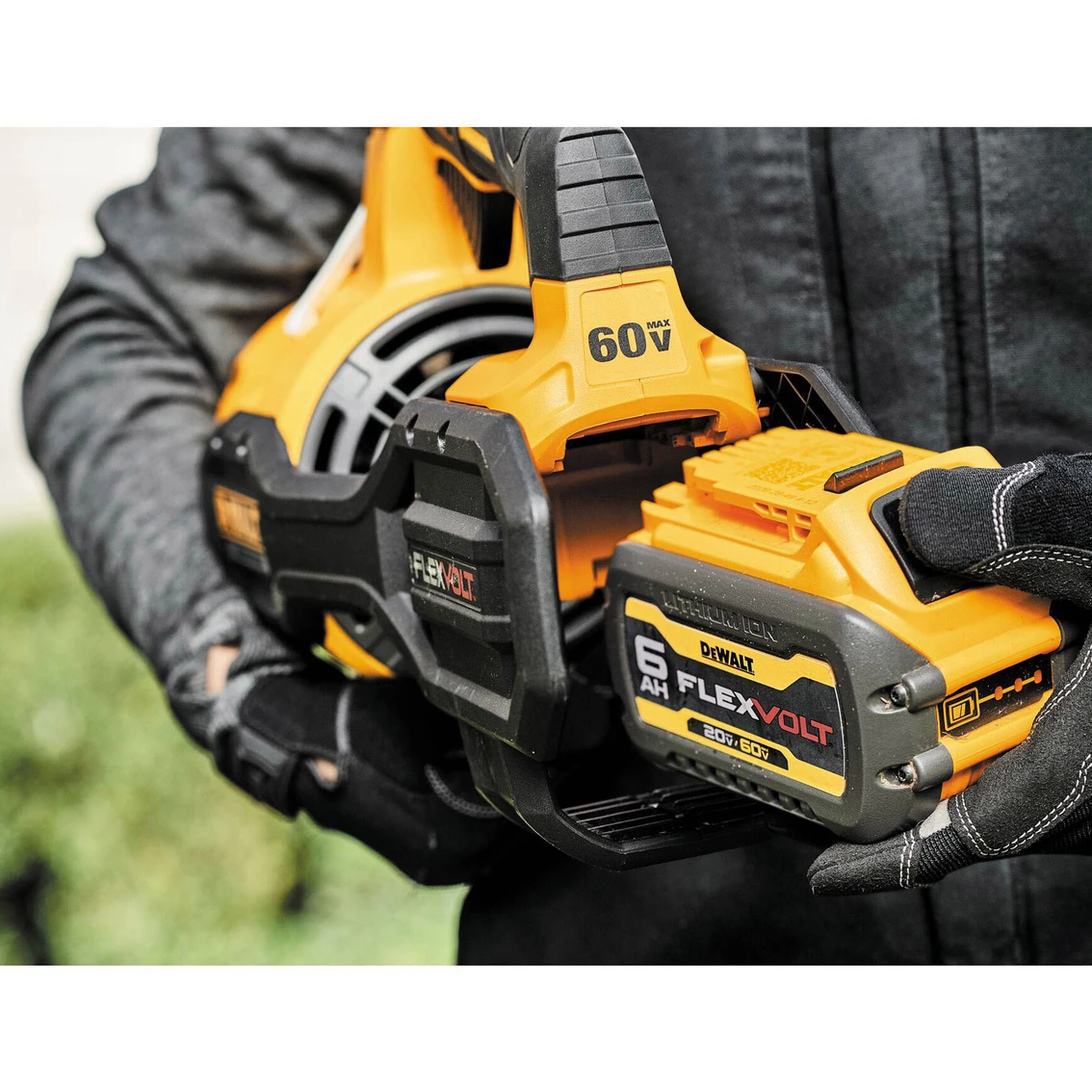 As part of the DeWalt 60V* MAX FlexVolt battery system of high-powered products, this Brushless Handheld Axial Blower powers through your task with up to 600 CFM of air volume and 125 MPH. It features a variable speed trigger and speed lock to control the blower output. The brushless motor design is high efficiency to provide high power and helps extend runtime. Kit also comes with a 20V/60V* MAX FlexVolt battery and charger that can power your line-up of 60V* MAX tools and equipment as well as your 20V* MAX tools and can be charged with your 20V* MAX chargers. Model: DCBL772X1.