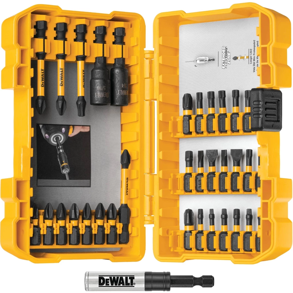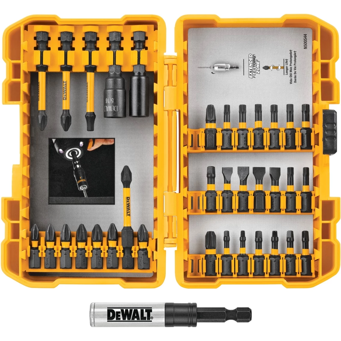 CNC machined bit tip deliver a precise fit in screw heads for reducing cam-out. Extended FlexTorq Zone tranfers optimal torque for durability and a longer life.
