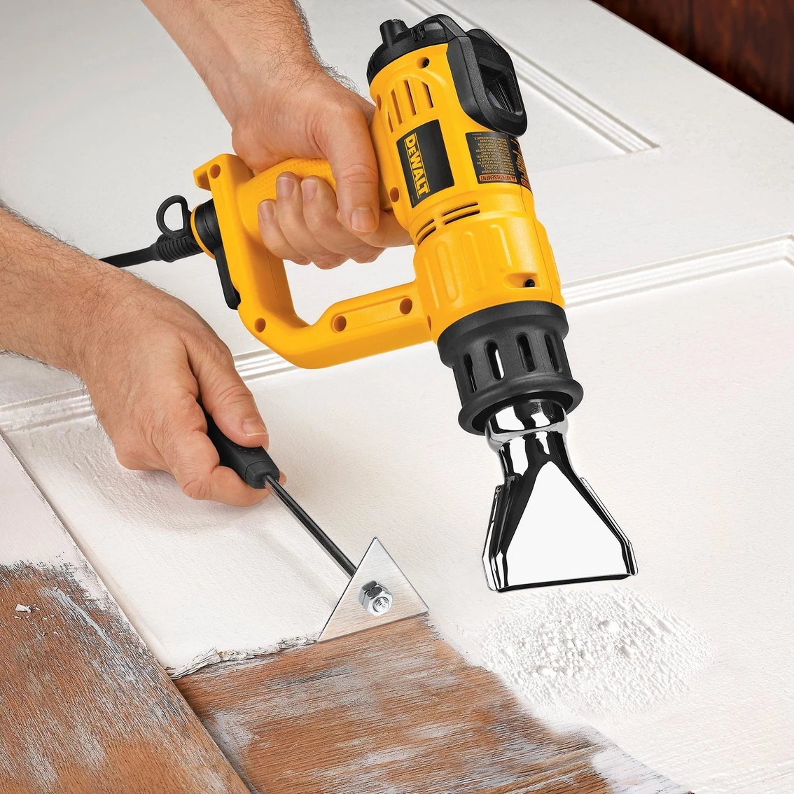 With the DeWalt D26960K LCD Heat Gun, you can adjust temperatures in 50-degree increments and avoid overheating with overload protection. It features an innovative kickstand for great stability and has a lightweight, compact design. The LCD display allows you to adjust the temperature within 50-degree increments. Built-in overload protection shuts the heating element down and prevents burn up. Built-in hang ring adds a convenient storage feature. The cord protector keeps the cord from tearing away from the housing. A built-in innovative kickstand support provides greater stability and prevents tip over. An ergonomic comfort grip provides greater comfort for long hours of use. This lightweight and compact design weighs only 2.3 lb. Includes: cone nozzle, fishtail surface nozzle, 10 other common accessories and kit box. Model: D26960K.