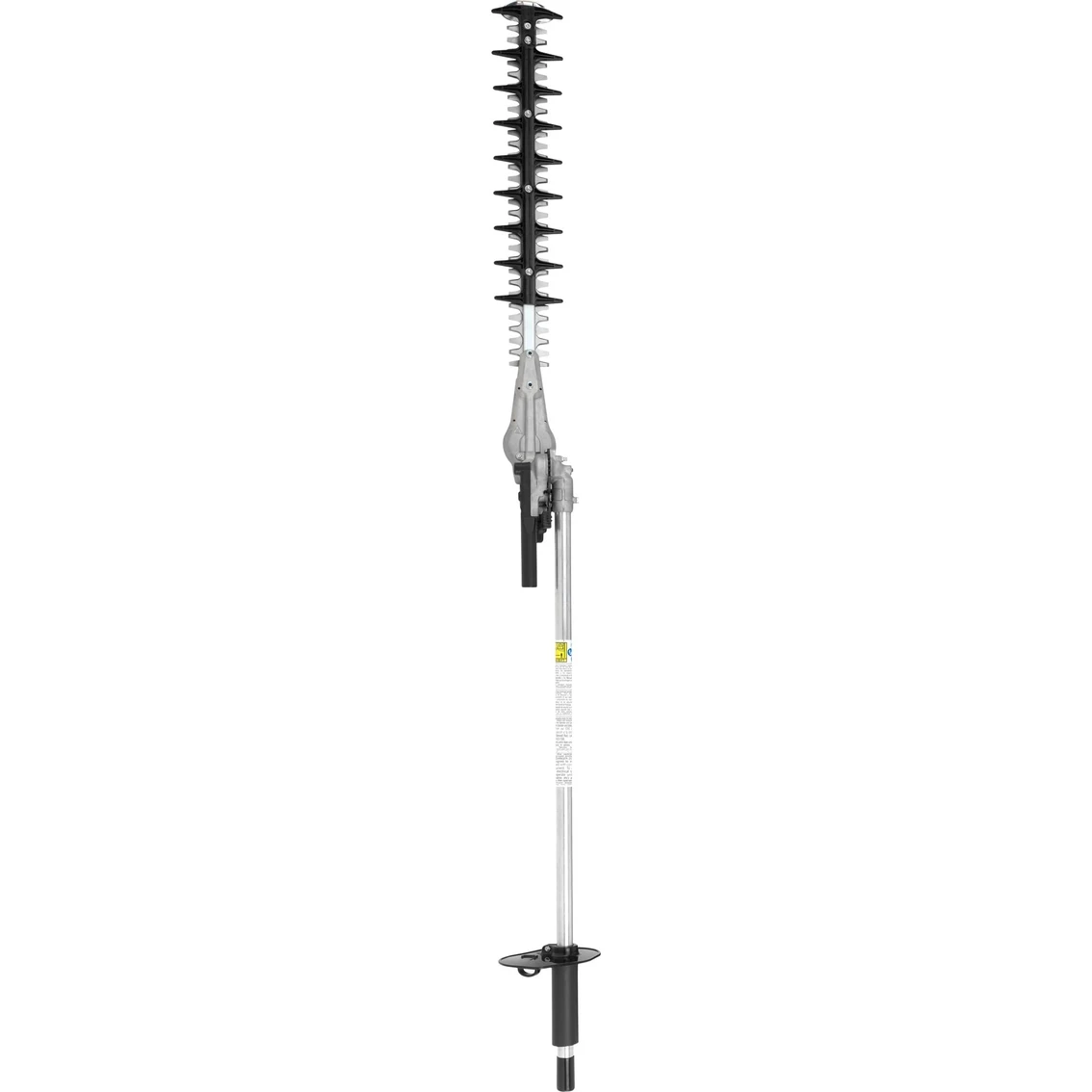 This Echo Pro Attachment Series Articulating Hedge Trimmer Attachment is compatible with PAS-225, PAS-230, PAS-266, PAS-280 and PAS-2620. Multi-position attachment allows for a variety of hedge trimming applications and includes 21 in. double-sided, double-reciprocating blades. Blade folds flush to shaft for easy storage. Special gear case allows operational blade set articulation of 135 degrees in 15-degree increments (range including storage position: 270 degrees) Model: 99944200596.