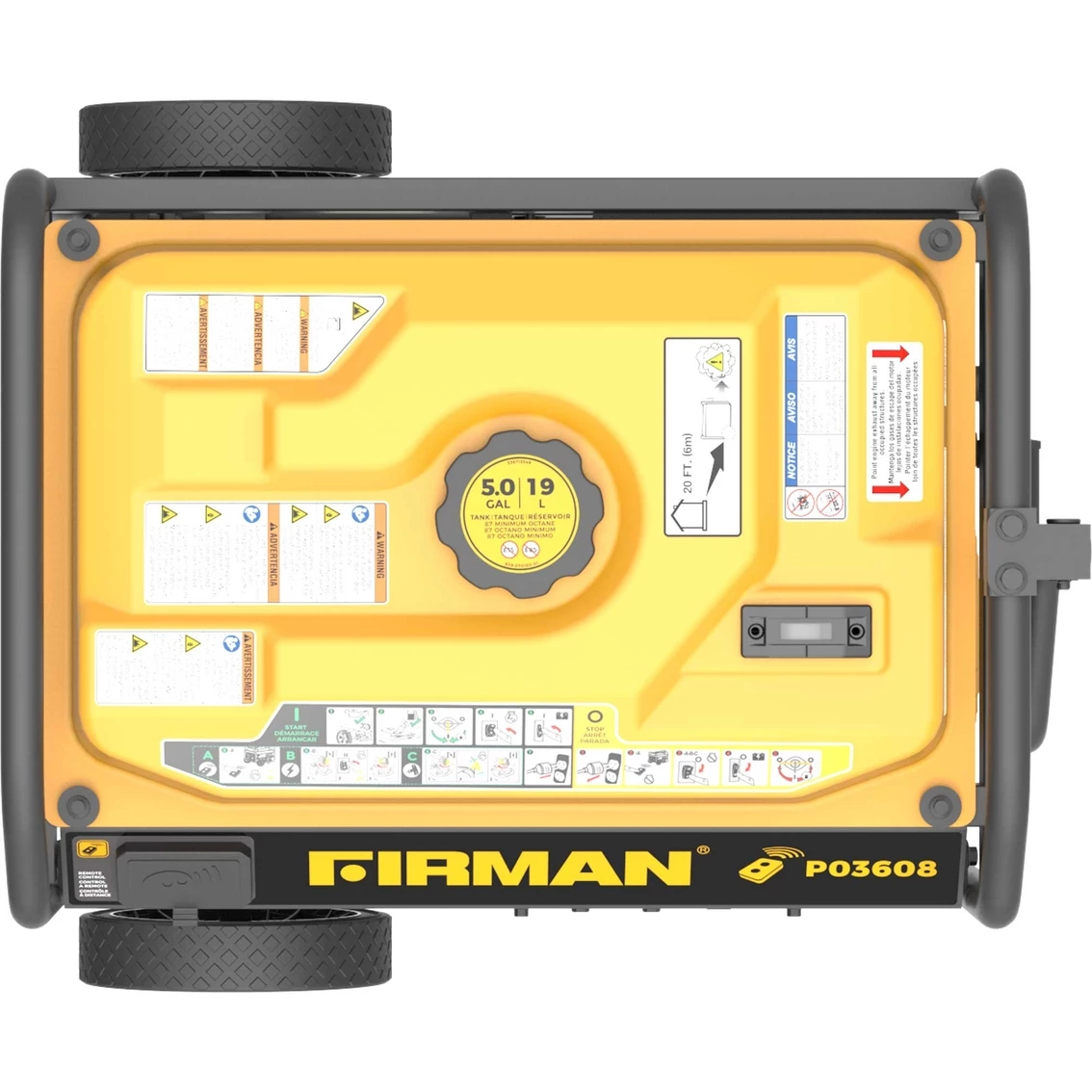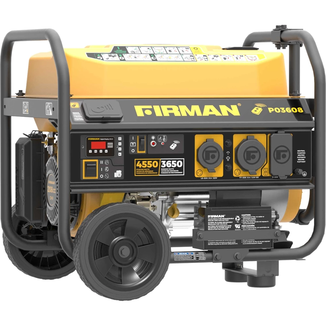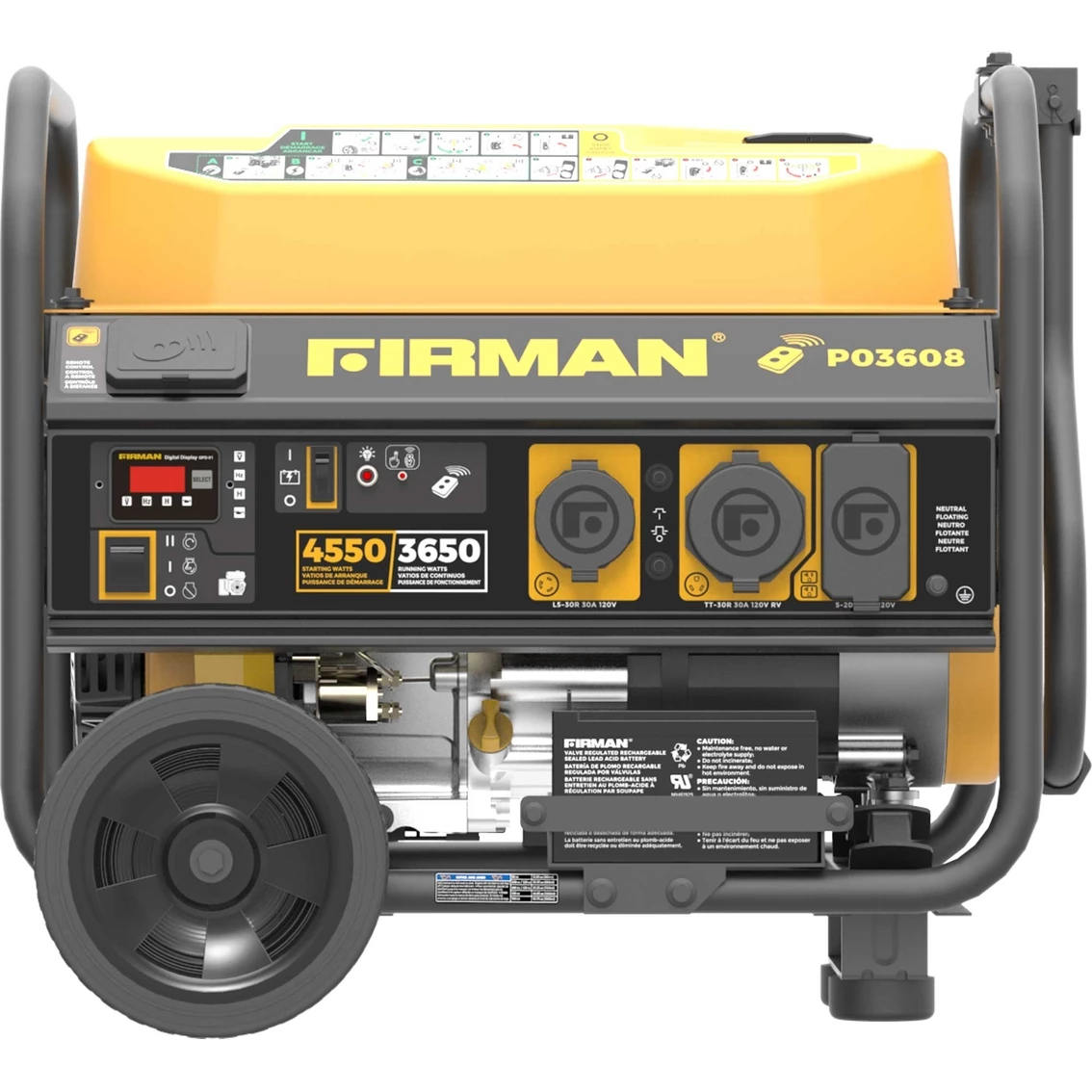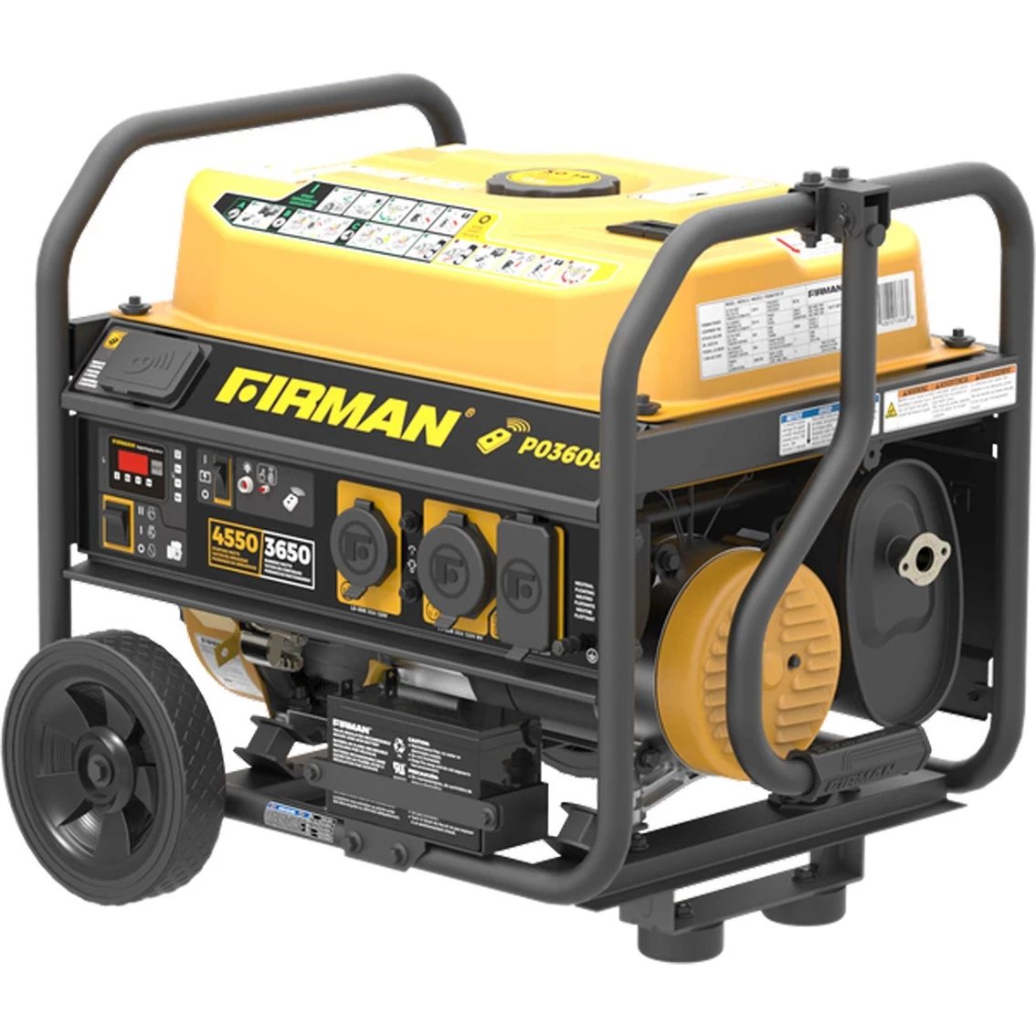 The Firman Power Equipment FM P03608 Generator 3650w Performance Series is a 3650 Watt with a wheel kit remote and features electric and recoil start. EPA and Carb certified in California. Model: P03608.
