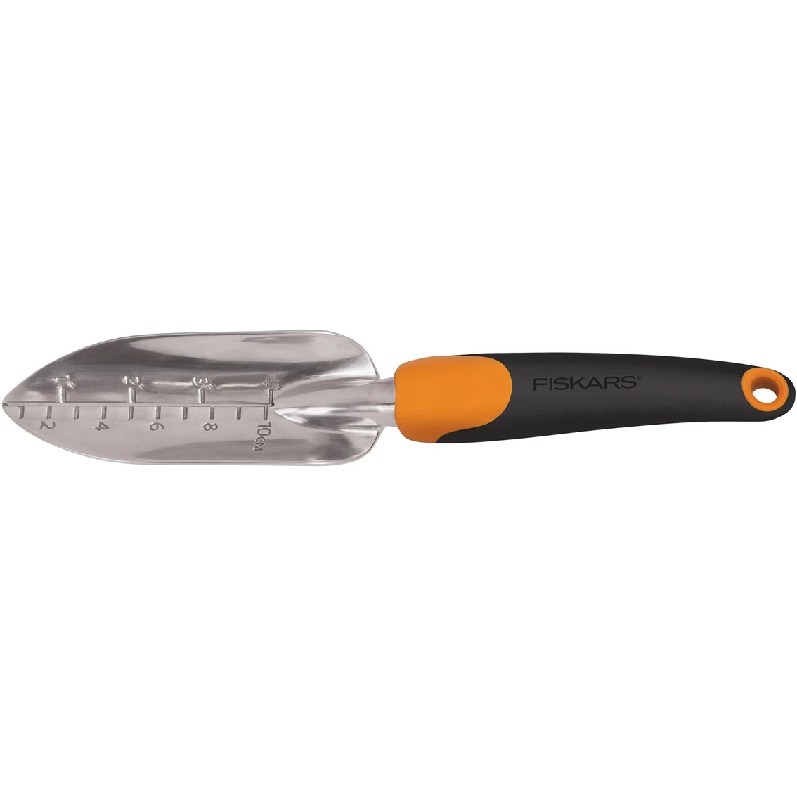 The Ergo Transplanter from Fiskars makes transplanting small plants and flowers quick, easy and efficient. Designed for easy use and lasting durability, it features a special ergonomically designed handle that reduces hand and wrist fatigue, plus gradation marks on the blade for easy depth measurement for perfect transplants. The polished cast-aluminum head resists rust for lasting value and won’t snap off while you are digging, no matter how dense or tough your soil is. A handle hang hole offers easy and convenient storage options. Model: 384230-1001.