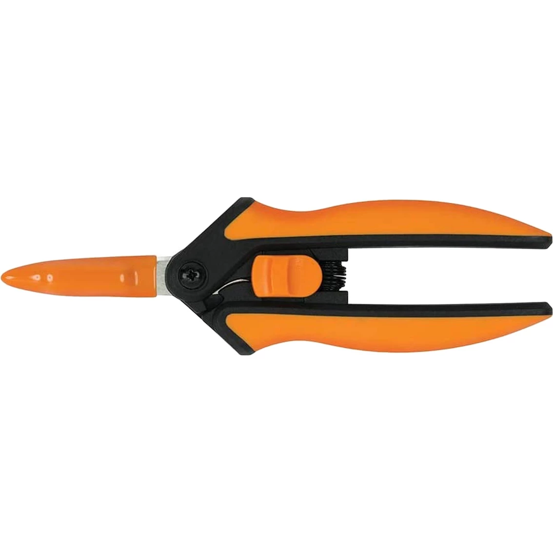 Perfect for encouraging healthy growth on plants and flowers, the precision blades on Fiskars Micro-Tip Pruning Snips are ideal for shaping, repetitive trimming and intricate snips. Precise, Micro Tip blades cut all the way to the tip for clean, healthy cuts in tight spaces, while fully hardened, stainless steel blades with a precision-ground edge stay sharp – even through heavy use. Awarded the Arthritis Foundation’s Ease of Use Commendation, these snips also feature an Easy Action spring that gently opens the blades after every cut to help reduce hand fatigue derived from repetitive cuts – especially helpful for gardeners with arthritis or limited hand strength. Additionally, comfortable handles feature Softgrip touchpoints for enhanced comfort and control, while an easy-open lock and blade cover protects blades for safe transport and storage. Model: 399240-1003.