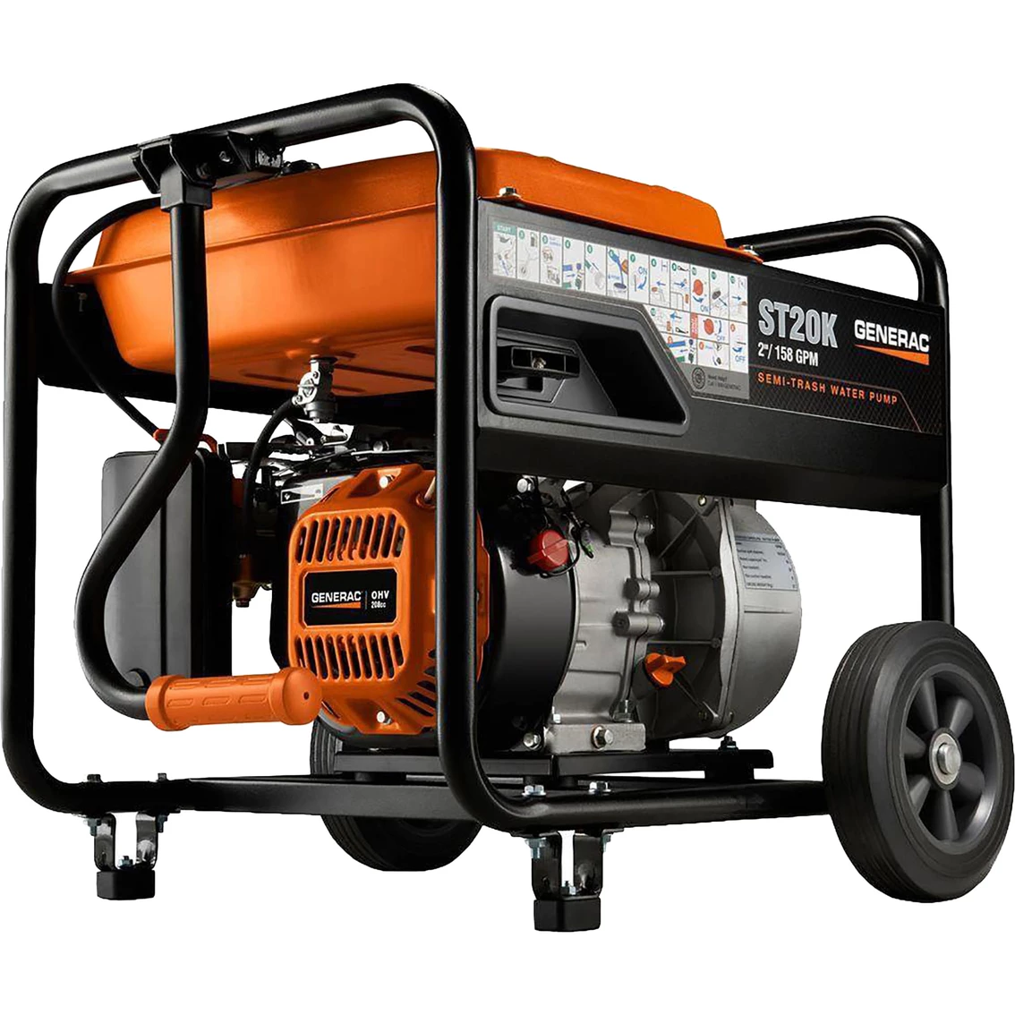 Specifically engineered to handle muddy or sandy water, the ST20K is powered by a 208cc Generac engine that pumps up to 158 gallons per minute. So itβs ideal for your toughest applications. With features such as low-oil shut down to protect the engine from damage, itβs both durable and easy to use. Recoil Pull Start with a 208 CC 4-cycle/OHV. Model: 6822.