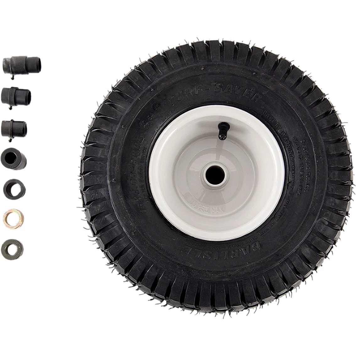 Replace flat or worn lawn mower wheels every season to keep your machine properly maintained. This universal front wheel fits most lawn tractors with a 15-in. front wheel. Arnold has everything you need to keep equipment running the way it should season after season. With Arnold you can be confident of a reliable product with accurate fit, design, material, and construction. In addition to reliable parts and accessories, Arnold’s easy-to-follow instructions and extra tips will ease your equipment maintenance and assure that you get the job done right.
