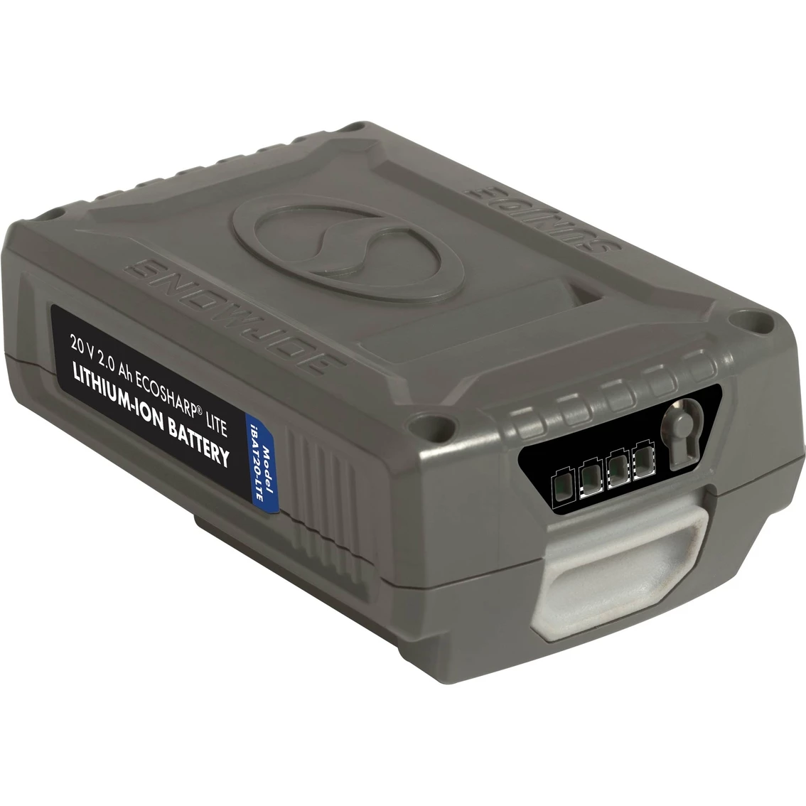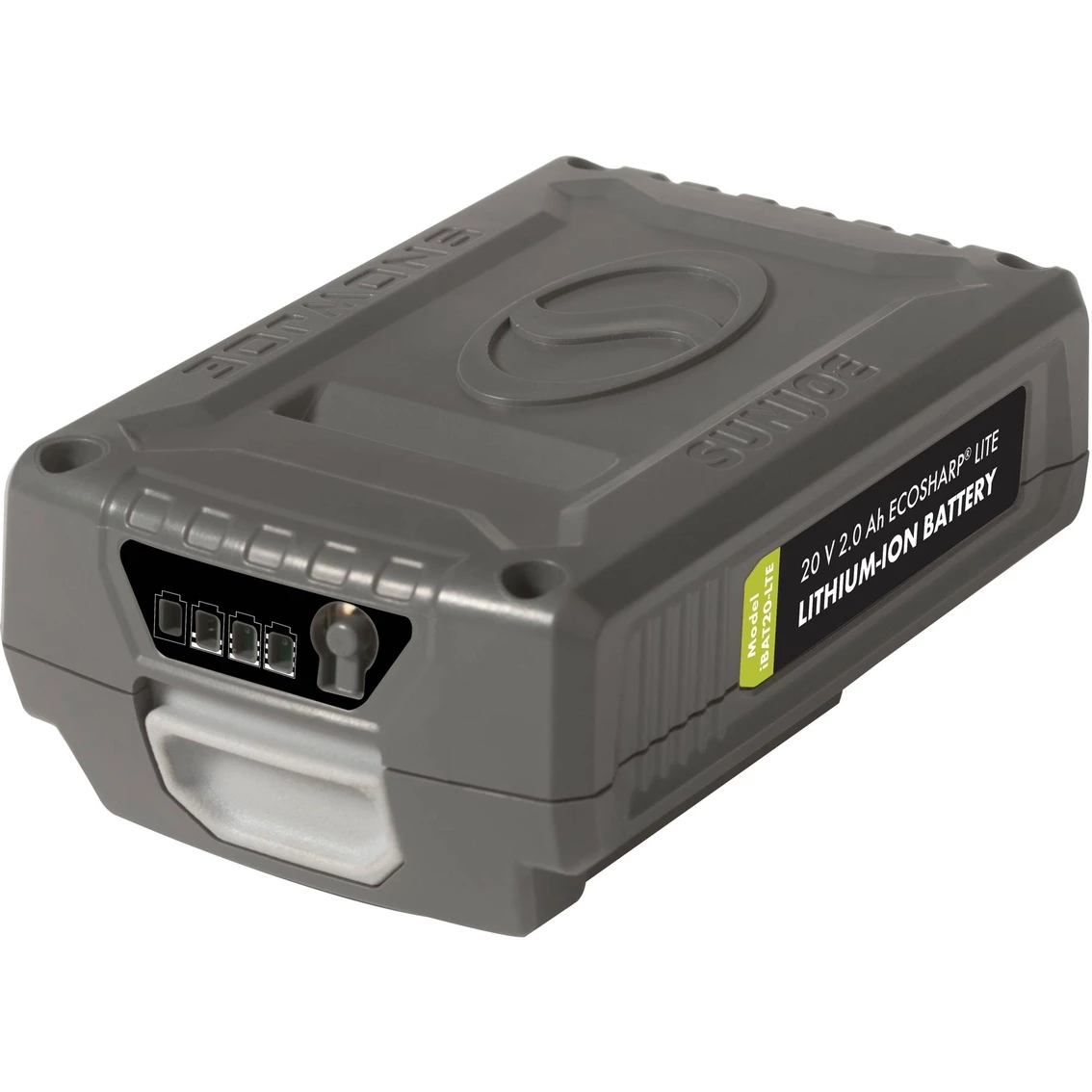 Power up. Power your cordless iON tools the eco-friendly way with the 20-volt EcoSharp iBAT20-LTE lithium-ion battery. Compatible with all Snow Joe and Sun Joe iON models, the iBAT20-LTE features high capacity 2.0 Ah lithium-ion cells that deliver no-fade power for maximum job performance. Simply insert the EcoSharp battery pack into your iON tool of choice and power up instantly without having to mess with gas, oil, pull-cords or tangled extension cords! Breathe easily and confidently while working with your iBAT20-LTE since this Energy Star-rated battery pack provides for cleaner, emission-free air during operation. Although run-times will vary depending on the tool used and the job performed, up to 50 minutes of whisper-quiet operation is a good approximation of what to expect from your iBAT20-LTE-powered tool. The fuel gauge indicator lights on the EcoSharp will also let you easily monitor your battery’s charge capacity while it is in use. When it is time to charge, simply slide the iBAT20-LTE into its dedicated iCHRG40 charger. Just like your cell-phone battery, the iBAT20-LTE has no memory effect, so there is no need to drain the battery or wait for full charge before use. The iBAT20-LTE holds its charge well in storage and will retain up to 65% charge for six months. Easy, convenient, reliable, and super-lightweight (only 1.67 lb.), the 20-volt EcoSharp iBAT20-LTE is the smart way to battery pack for your power trip. Model: IBAT20-LTE.