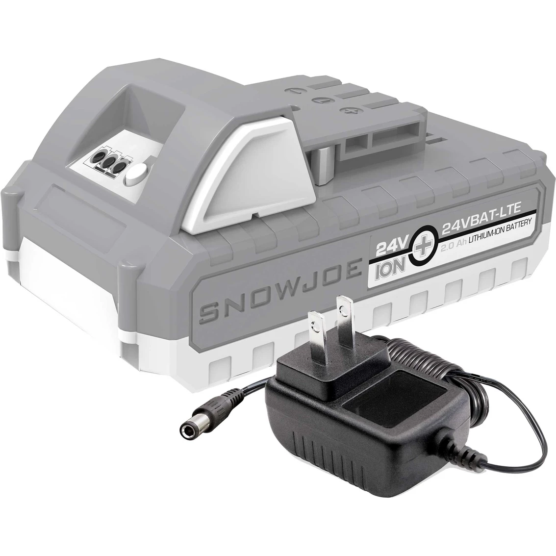 Power your cordless iON tools the eco-friendly way with the 24-volt iON+ 24VBAT-LTE lithium-ion battery. Compatible with all Snow Joe + Sun Joe 24V iON+ models, the 24VBAT-LTE features high capacity 2.0 Ah lithium-ion cells that deliver no-fade power for maximum job performance. Simply insert iON+ LITE into your 24-volt tool of choice and power up instantly without having to mess with gas, oil, pull-cords or tangled extension cords! Breathe easily and confidently while working with your 24VBAT-LTE, since the rechargeable battery pack provides cleaner, emission-free air during operation. Although run-times will vary depending on the tool used and the job performed, iON+ LITE charges up for the task in just 80 minutes max. The fuel gauge indicator lights on iON+ LITE will also let you easily monitor your battery’s charge capacity while it is in use. When it is time to charge, simply slide the 24VBAT-LTE into its dedicated 24VCHRG-AC or 24VCHRG-QC charger. The 24VBAT-LTE holds its charge well in storage and will retain up to 65% charge for six months. Easy, convenient, reliable, and super-lightweight — only 1 lb. — the 24-volt iON+ 24VBAT-LTE is the smart way to battery pack for your power trip.