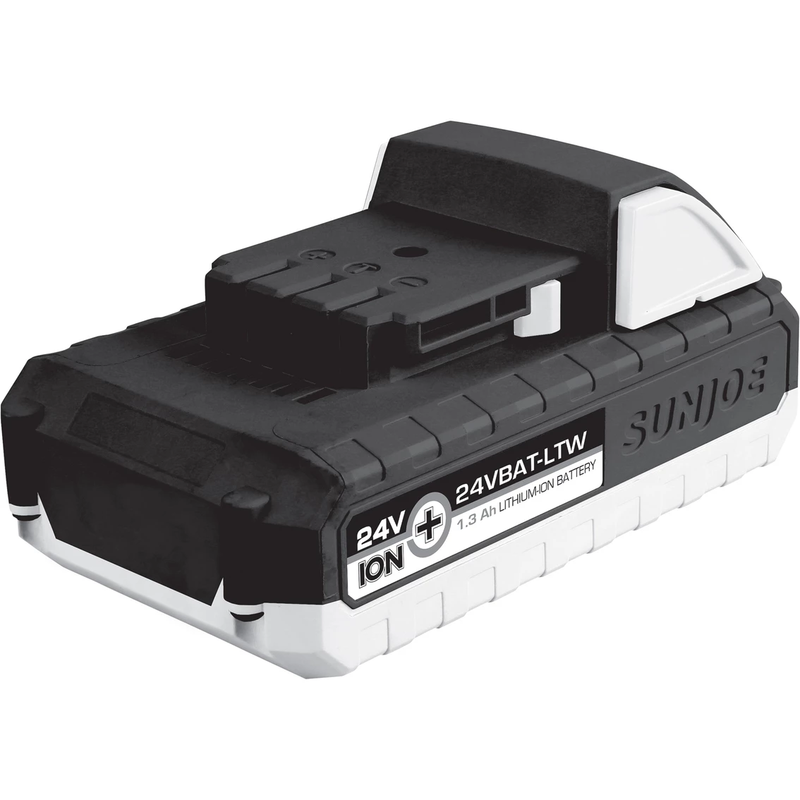 Power your cordless iON tools the eco-friendly way with the 24-Volt iON+ 24VBAT-LTW lithium-ion battery. Compatible with all Snow Joe + Sun Joe 24V iON+ models, the 24VBAT-LTW features high capacity 1.3 Ah lithium-ion cells that deliver no-fade power for maximum job performance. Simply insert iON+ LITE into your 24-volt tool of choice and power up instantly without having to mess with gas, oil, pull-cords or tangled extension cords! Breathe easily and confidently while working with your 24VBAT-LTW since rechargeable battery pack provides cleaner, emission-free air during operation. Although run-times will vary depending on the tool used and the job performed, iON+ LITE charges up for the task in just 50 minutes max. The fuel gauge indicator lights on iON+ LITE will also let you easily monitor your battery’s charge capacity while it is in use. When it is time to charge, simply slide the 24VBAT-LTW into its dedicated 24VCHRG-AC or 24VCHRG-QC charger. The 24VBAT-LTW holds its charge well in storage and will retain up to 65% charge for six months. Easy, convenient, reliable and super-lightweight (only 1 lb.), the 24-Volt iON+ 24VBAT-LTW is the smart way to battery pack for your power trip. Model: 24VBAT-LTW.