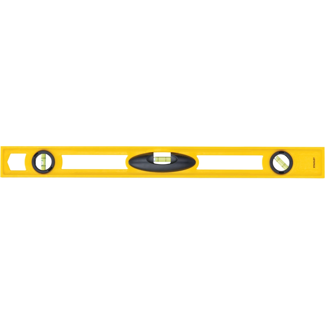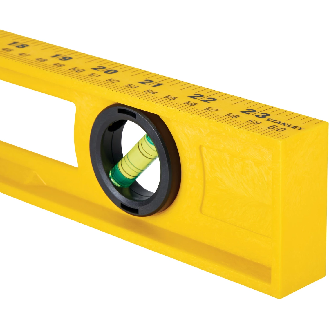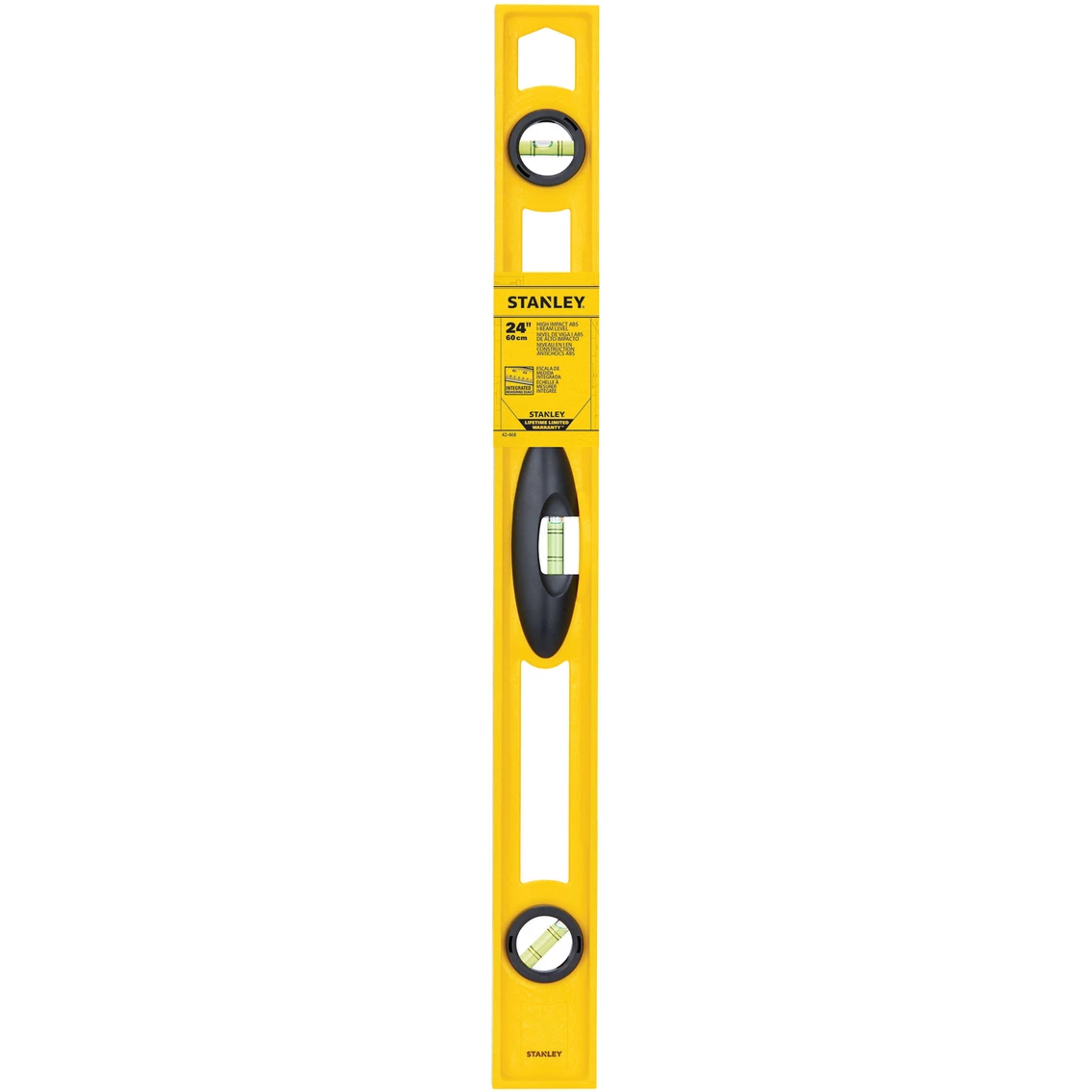 The Stanley 24 inch High-impact ABS Level is lightweight and durable. The non-marring ABS construction material provides a shock resistant frame to protect bubble vials and maintain accuracy. Added top read window for easy readability and reference measurements printed directly on the level make this versatile tool perfect for any project.