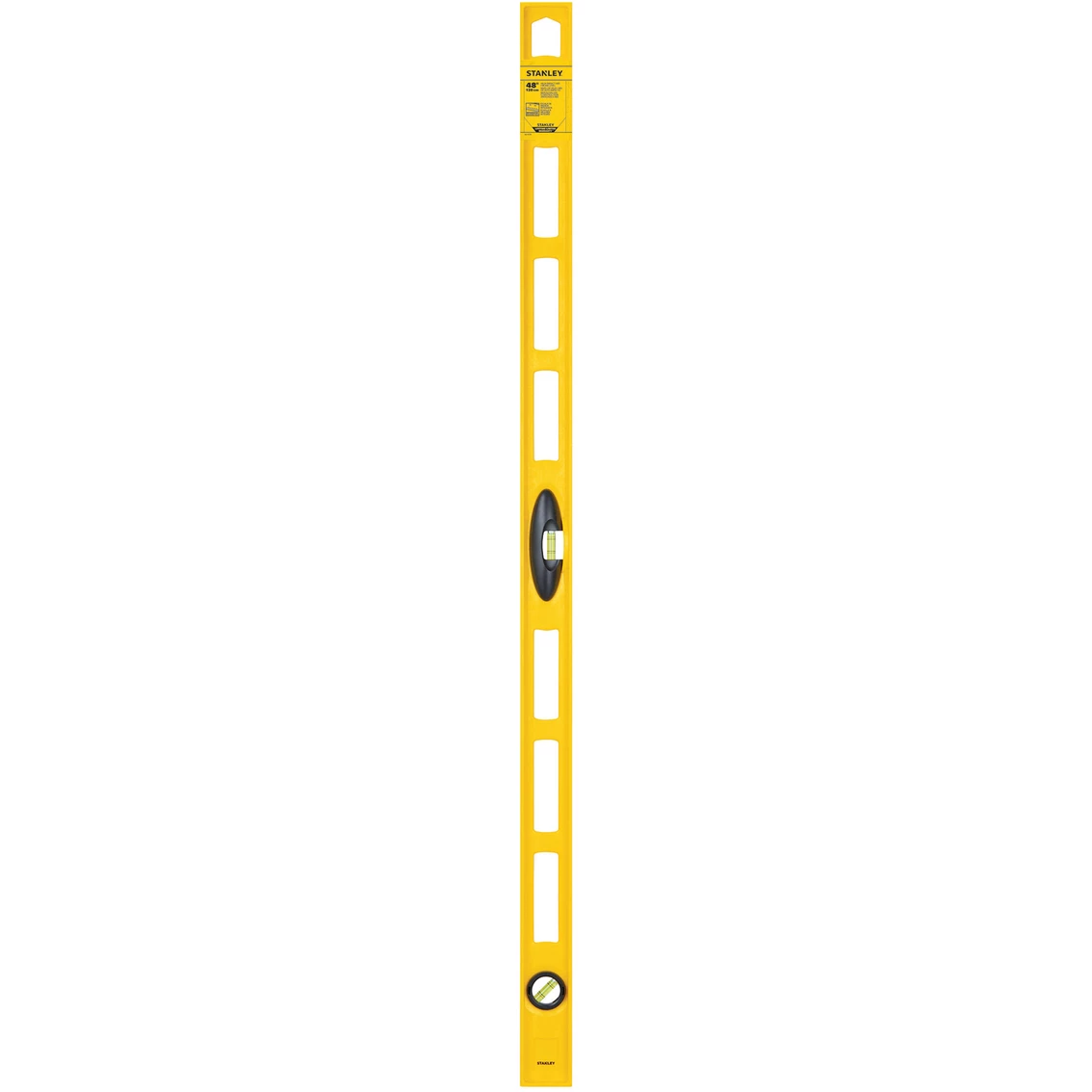 The Stanley 48 in. High-impact ABS Level is lightweight and durable. The non-marring ABS construction material provides a strong and shock resistant frame to protect bubble vials. Added top read window for easy readability and reference measurements printed directly on the level make this versatile tool perfect for any project.