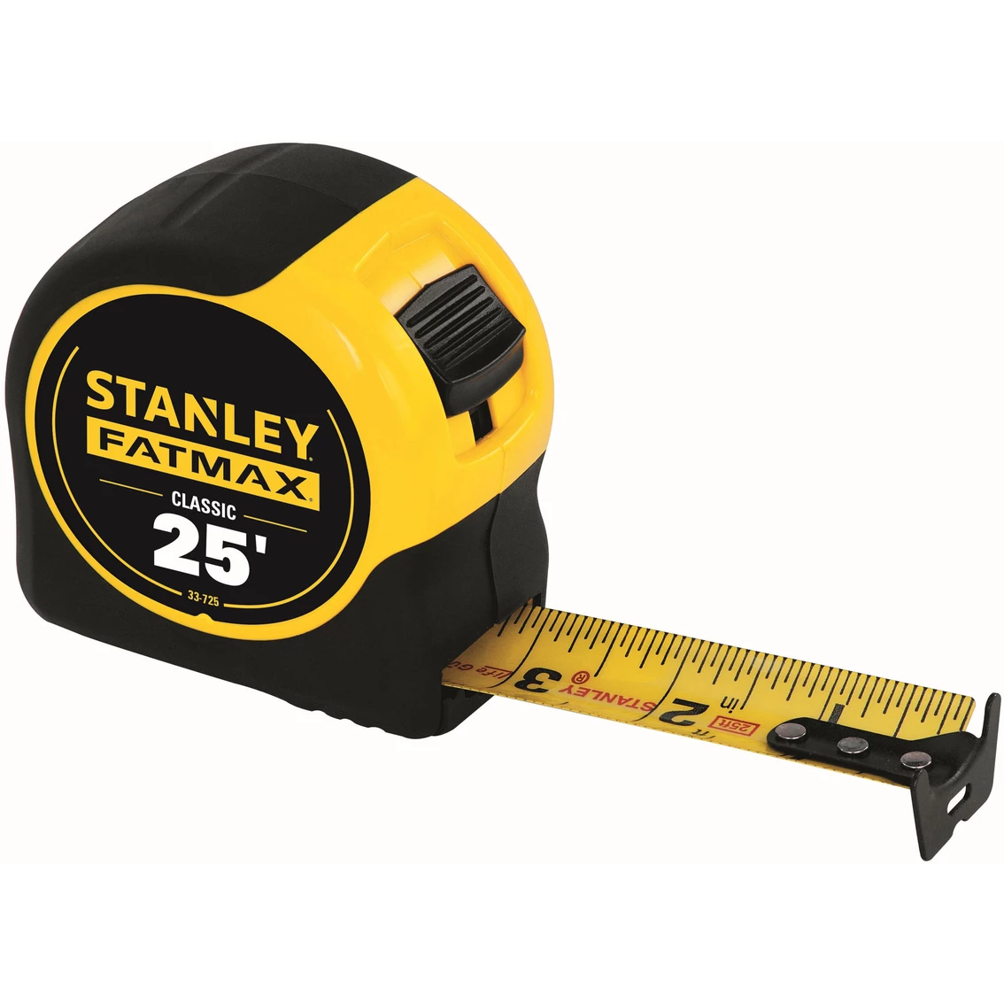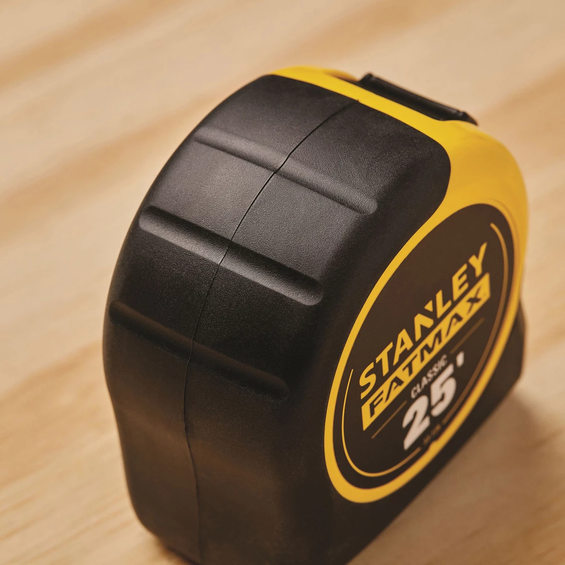 The Stanley FatMax Classic 25 ft. Tape Measure fits your tool belt, your hand and the job. Fourteen feet of reach and a durable, high-impact case make this tape dependable on any job site. Protective full tape blade coating and added BladeArmor at the hook extends tape life against abrasion and heavy use. Large, easy to read numbers and standard stud markers assure accuracy.