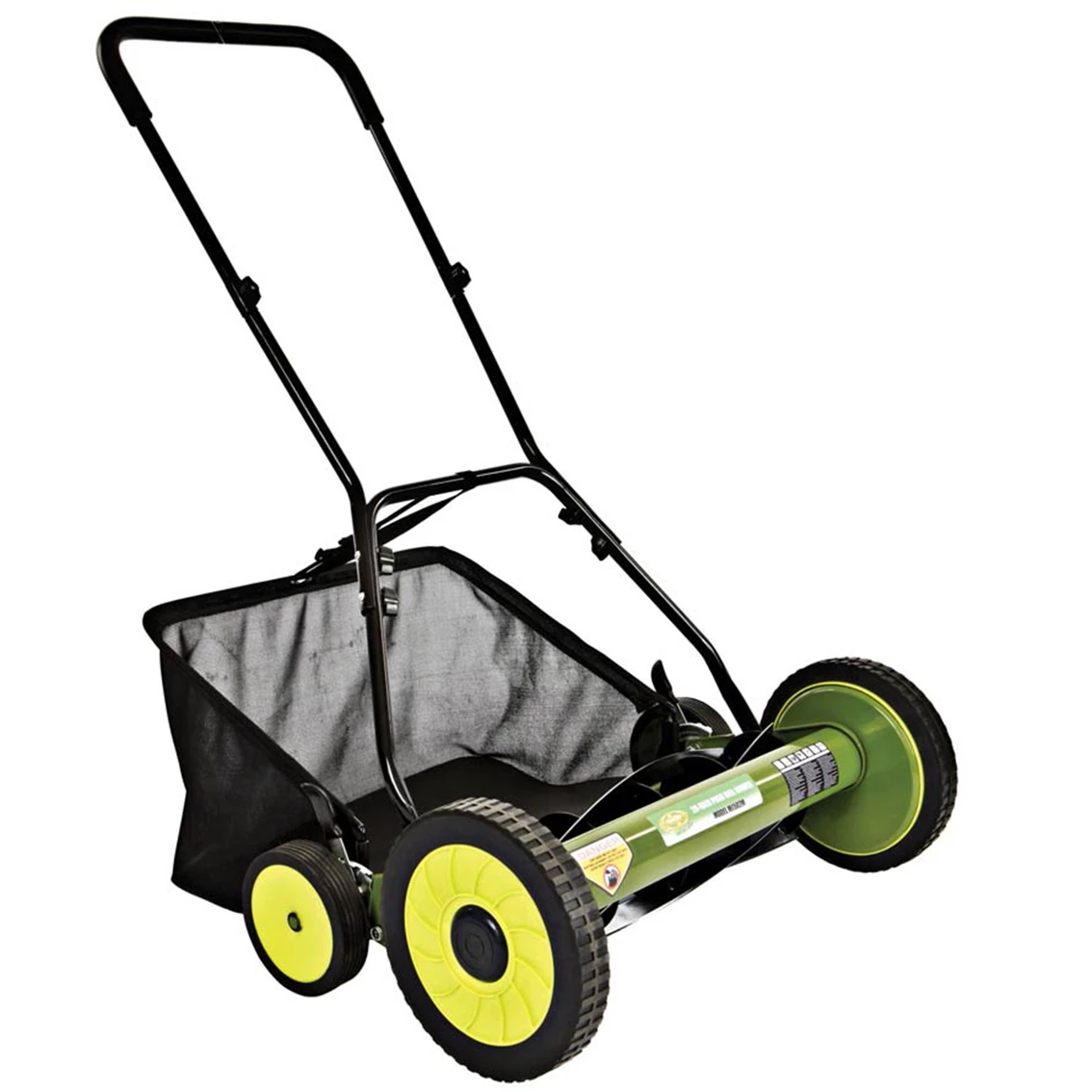 The Sun Joe MJ502M Reel Mower with Grass Catcher handles tough turf with ease. The MJ502M comes with a handy rear collection bag to help keep your yard nice and tidy. The mower’s dual wheel design and sharp harden steel blades ensures accuracy and cutting efficiency. Model: MJ502m.